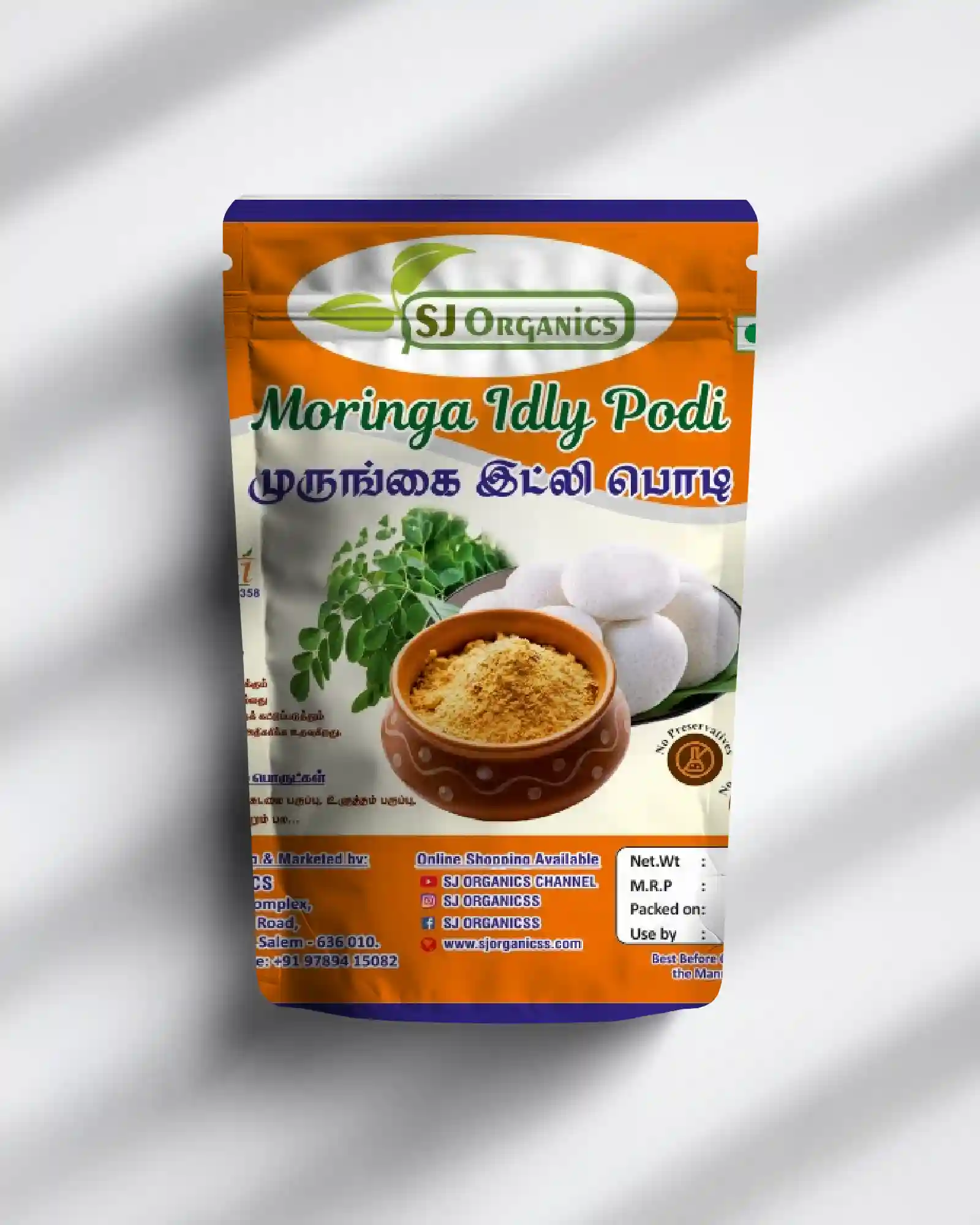 Our Murungai Idly Podi is a nutritious spice blend made from premium lentils, aromatic spices, and fresh drumstick leaves (Murungai Ilai). Prepared using a traditional recipe, it offers a delicious flavor while delivering the powerful health benefits of Murungai—known as a natural superfood.